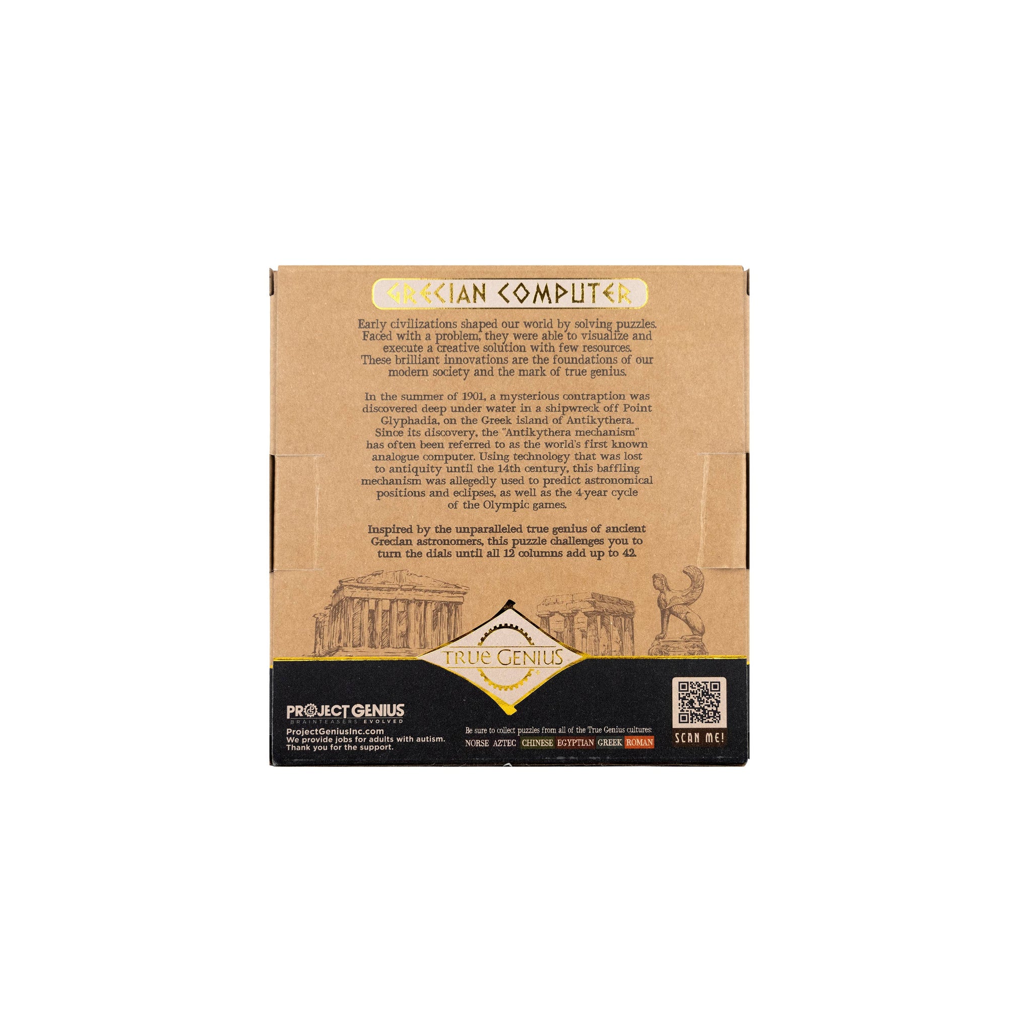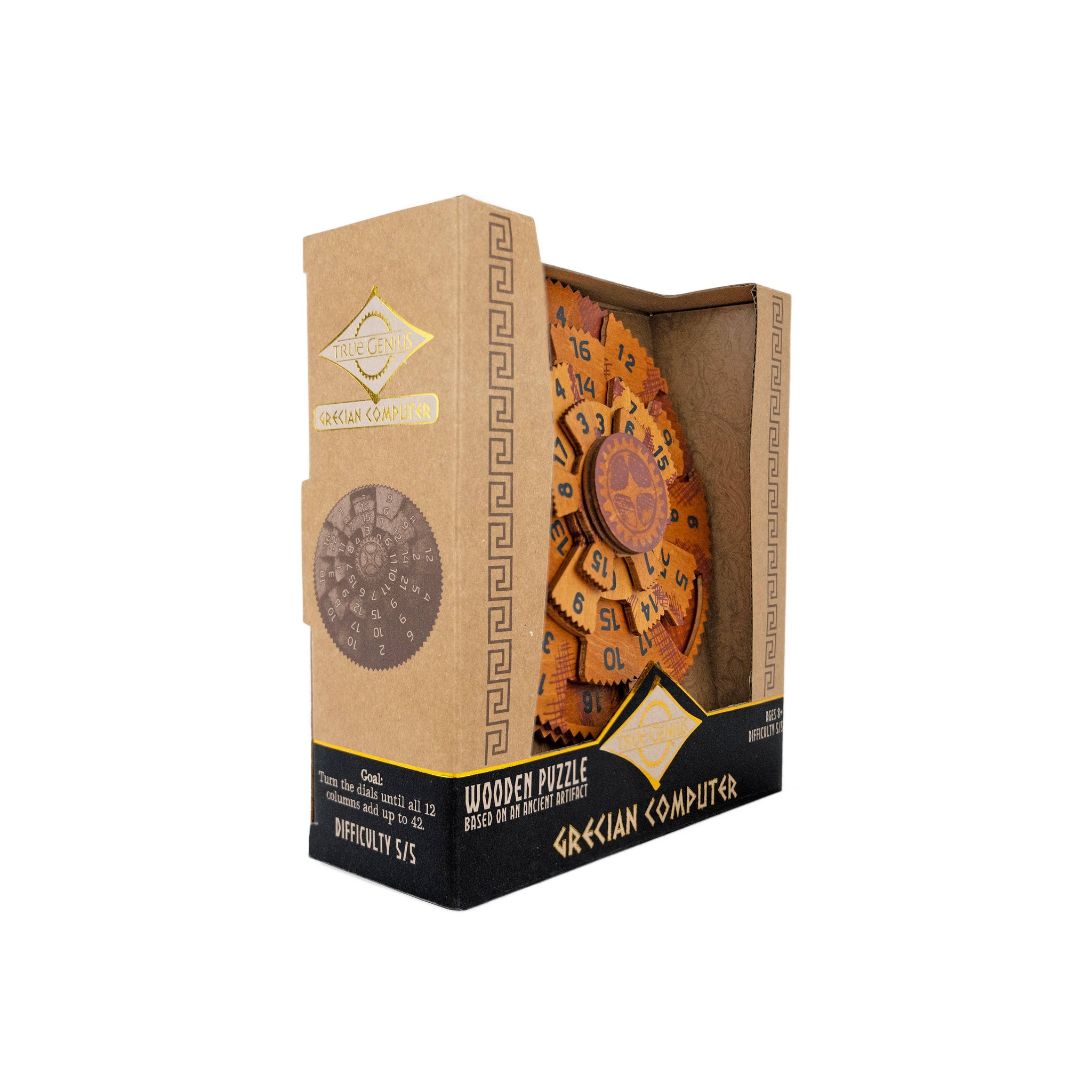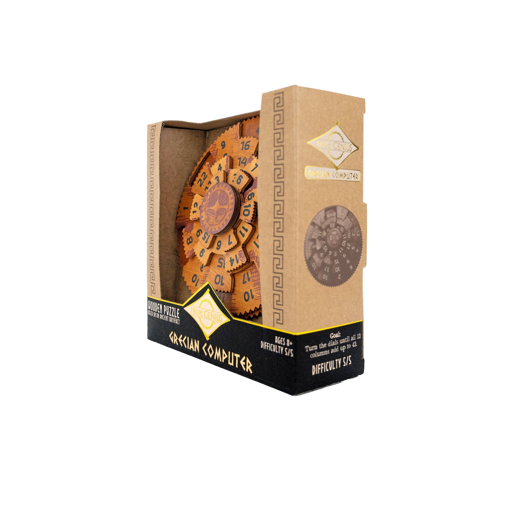 Inspired by the unparalleled true genius of ancient Grecian astronomers, this puzzle challenges you to turn the dials until all 12 columns add up to 42. One of our hardest and best-selling puzzles in the True Genius collection. Part of our True Genius collection -- a best selling brand for stores selling smart, bookish gifts.